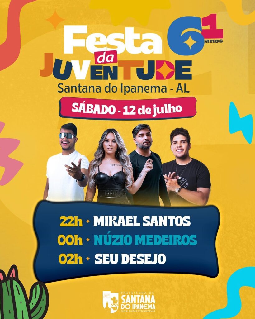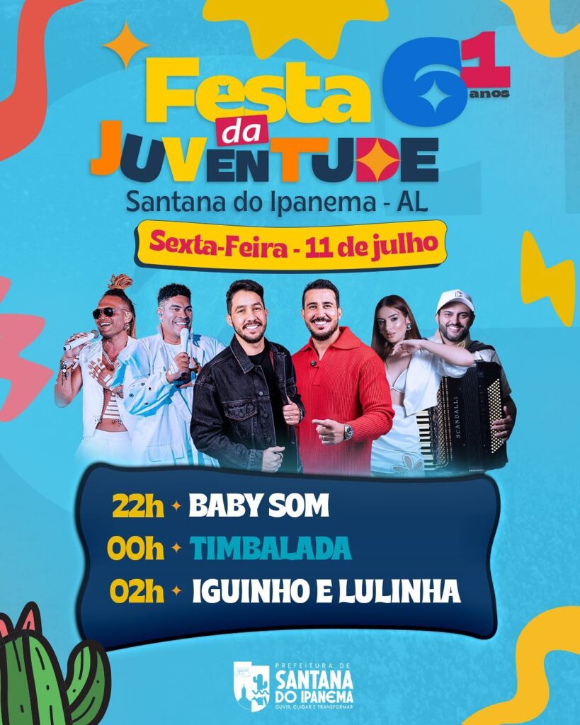 A 61ª edição da tradicional Festa da Juventude já está movimentando a cidade de Santana do Ipanema com a realização de diversos eventos durante toda a semana, e a partir desta sexta-feira (11) começam os shows musicais. O evento se consolida como um dos maiores do interior alagoano e promete atrair uma multidão com uma programação musical de peso.